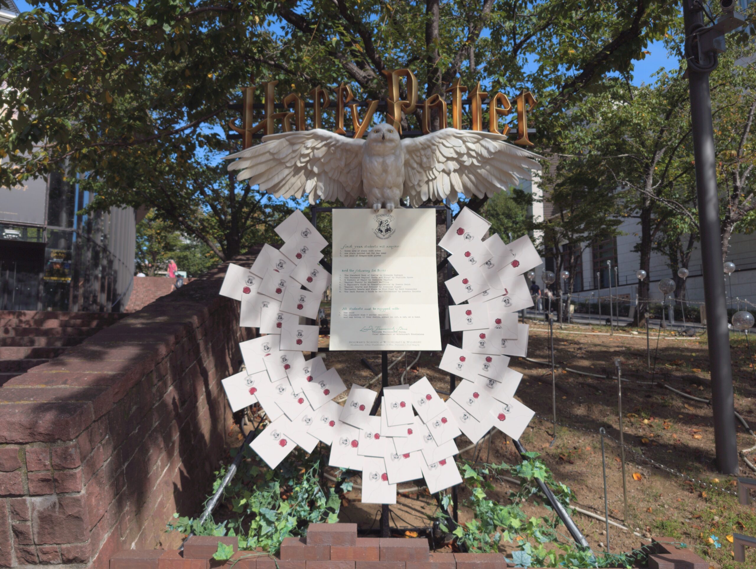 赤坂サカス周辺、赤坂駅方面から劇場へ向かう途中には、ハリー・ポッターの忠実な相棒である白ふくろう「ヘドウィグ」と、ホグワーツの入学許可証をモチーフにしたモニュメントが設置されています。