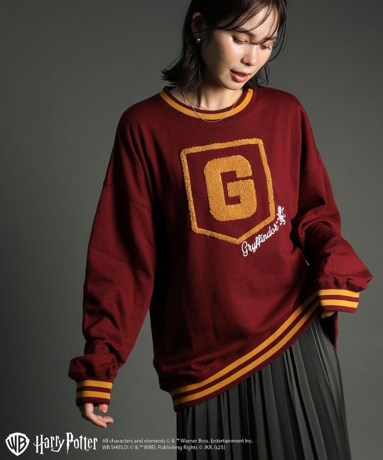 「グリフィンドール」「ハッフルパフ」「スリザリン」「レイブンクロー」のイニシャルさがら刺繍やロゴモチーフ刺繍がポイントのプルオーバー。