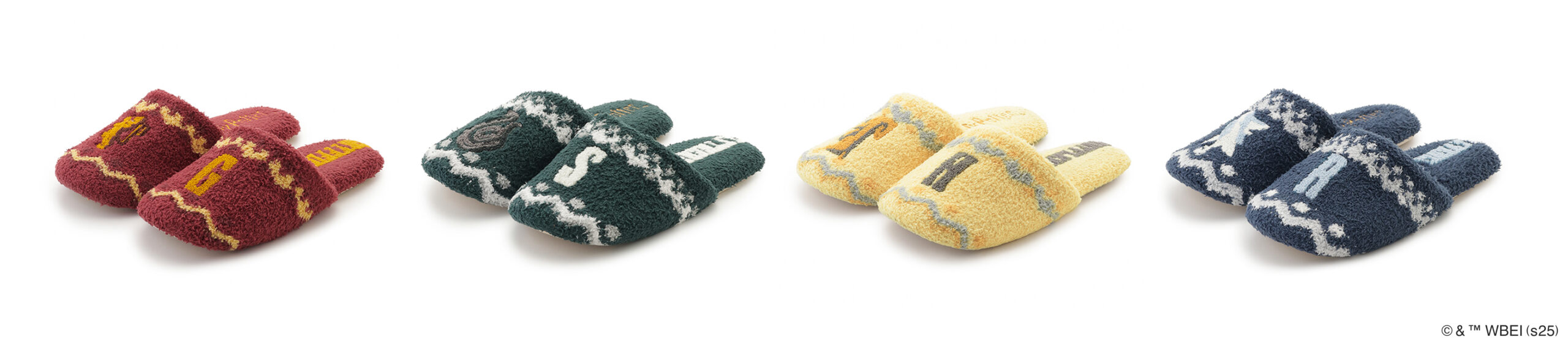 片方は各寮の名前やイニシャル、もう片方にはシンボルと「Harry Potter」のロゴ刺繍が入っています。毛足の長いふわふわとした柔らかな履き心地も嬉しいポイント。