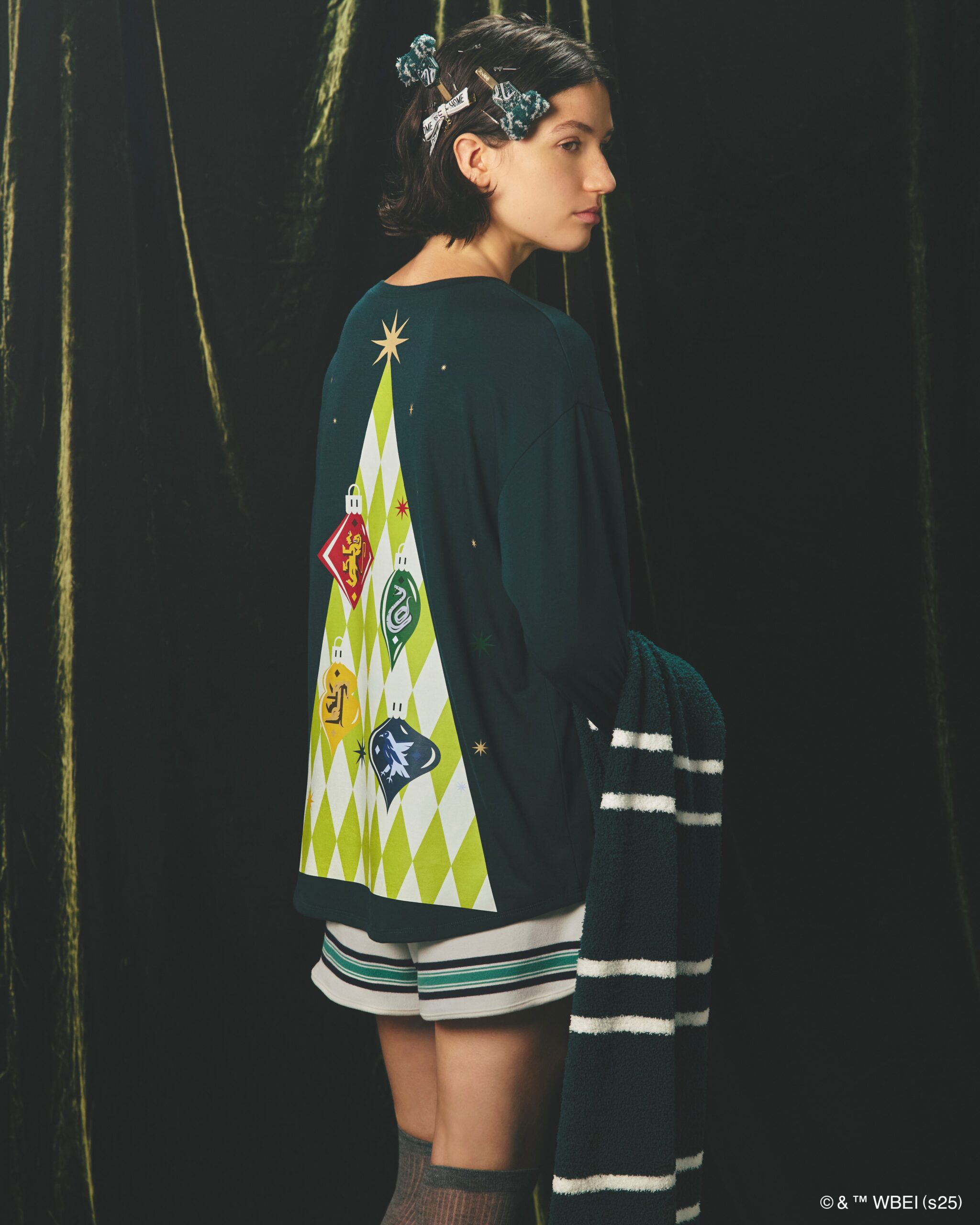 今回のコレクションでは、例年人気を博すホグワーツ4寮のアイテムに加え、ヘドウィグやドビー、組分け帽子、バースデーケーキといった物語に欠かせないモチーフが新たに登場。SNIDEL HOMEらしいデザインで表現された、魔法のようなルームウェアコレクションをご紹介します。